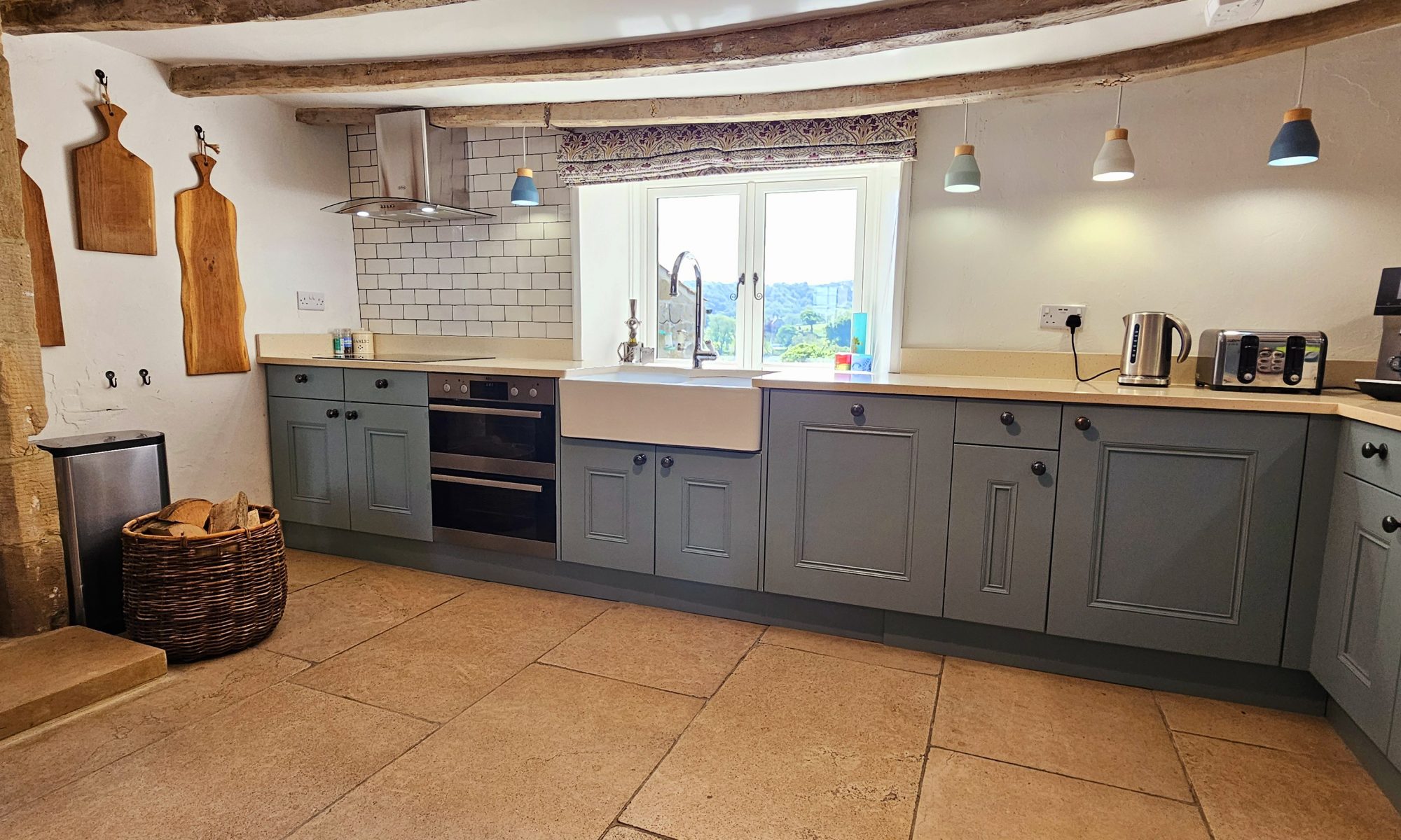 Stone flagstones with underfloor heating throughout provide a warm cosy feel.